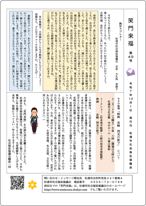 ・「社協だよりダウンロード」に Vol.80(令和7年10月1日発行) を追加しました。 プレゼントクイズもありますので是非ご覧下さい。